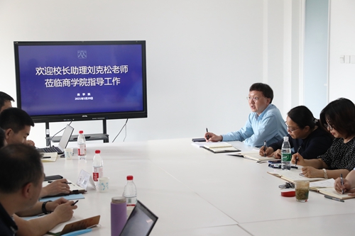 5月20日,院长助理刘克松教授到商学院调研工作,召开调研座谈会,会议由商学院院长席阳教授主持,商学院班子成员、教研室主任、教授代表参加了座谈会。