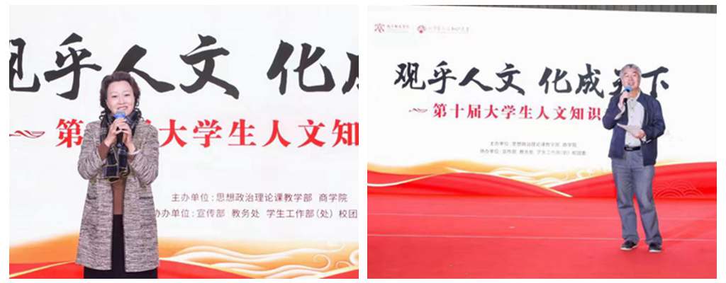 为深入学习贯彻党的二十大精神,提升学生的人文素养,坚定文化自信,2022年10月27日下午,我校第十届大学生人文知识竞赛决赛在大礼堂成功举办。本次竞赛作为学校第十八届“科学·艺术·时尚”节的重要活动之一,由思想政治理论课教学部、商学院主办,宣传部、教务处、学生工作部(处)、校团委联合协办。北京化工大学马克思主义学院院长贾钢涛教授、中国音乐学院思政部佟怡教授、校党委宣传部常务副部长张宏娜老师、学生工作部(处)部长江建老师、商学院党委书记刘疆老师、北校区主任张然老师、原校教学督导专家董瑞侠教授、思政部主任张红玲教授,各院系党委(总支)副书记和辅导员等200余名老师同学一起在现场观看了比赛。