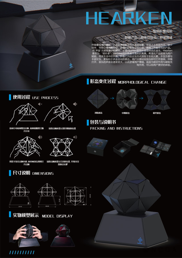 作品名称:HEARKEN-智能折叠音响(服饰艺术与工程学院)