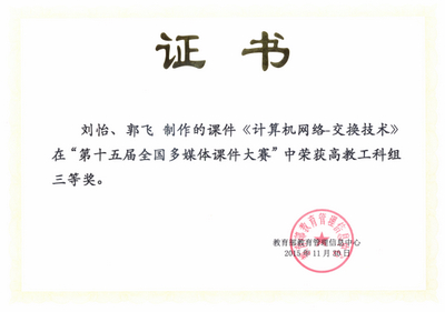 大赛分为课件组和微课组两个组别,从大赛启动至作品上传截止历时6个月。全国共征集到参赛作品6227件,评选出一等奖363件,二等奖1081件,三等奖2140件。我校共有6件作品参赛,均获得了奖项。其中计算机信息中心洪颖、修毅、邵熹文老师的《网页设计》课件获得高教文科组一等奖;信息工程学院刘怡、郭飞老师的《计算机网络-交换技术》课件获得高教工科组三等奖;基础教学部候志萍老师的《定积分在几何中的应用-求旋转体的体积》获得微课组三等奖;外语系李傲君、计算机信息中心杜运庆、信息工程学院刘怡、范秀娟等老师的作品获得了优秀奖。我校教师在本次大赛中取得了优异的成绩,获奖作品不仅凝结了参赛教师的辛勤汗水,更彰显了我校现代教育技术的应用水平。