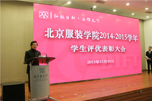 最后,院长刘元风教授总结讲话。他回顾了一年来学校各项事业取得的长足进步,指出同学们勤奋学习、勇于进取,涌现出了一大批先进集体和个人,为弘扬“弘毅日新衣锦天下”的校训精神、进一步提升北服良好的社会形象和美誉度做出了突出贡献。他鼓励同学们以此次表彰大会为新起点,再接再厉,努力学习,积极成为社会主义核心价值观的践行者,作有理想、有担当的北服学子。2014-2015学年,我校共评选出“学生心目中的十佳班主任”10名,市级和校级先进班集体12个,校级三好学生120名,优秀学生干部133名,13名同学获国家奖学金,202名同学获国家励志奖学金,245名同学获得由企业、社会及个人设立的各专项奖学金,校内人民奖学金获奖人次达1693人次,241名研究生获得研究生学业奖学金。此外,我校学生在国内外重大赛事中频频获奖。在国际重大比赛中获奖6项,在全国重大比赛中获奖35项,在地区性或行业性举办的赛事中获奖142项,共有318位同学获得我校本学年“奋进创新奖”