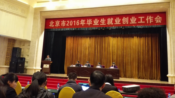 【新闻中心讯】12月22日,北京市召开了2016年毕业生就业创业工作会,北京市教委副主任叶茂林、北京市人力社保局副局长桂生出席会议并讲话。市教委、市人力社保局、高等学校、中专学校、区县人力社保局、区县毕业生就业工作部门、区县毕业生档案管理部门、区县村官办、市政府各委、办、局、总公司等负责人参加此次会议。会议由市教委学生处处长沈聪伟主持。我校党委副书记倪赛力在会上就大学生创业工作做了经验交流。