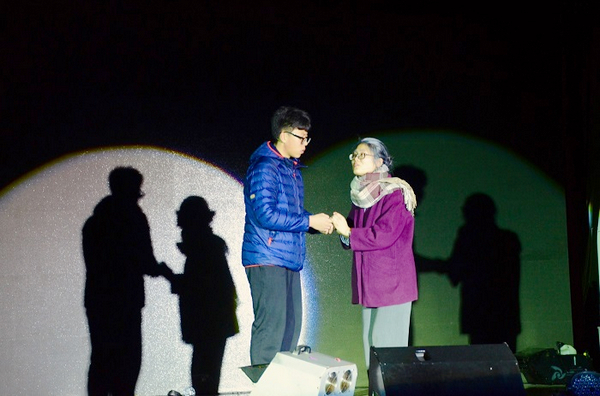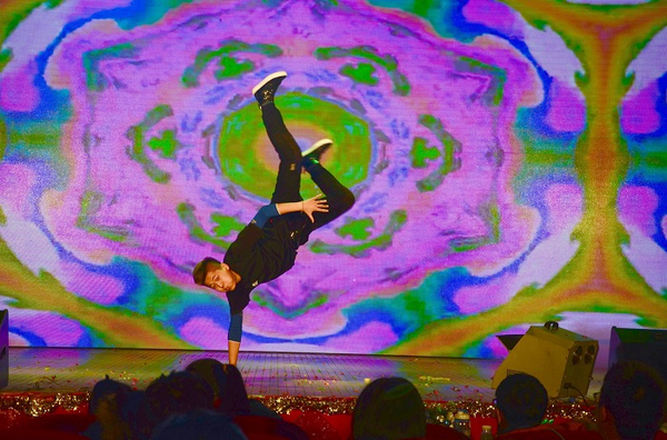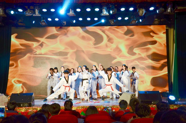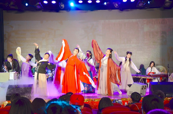 接下来的节目异彩纷呈:老歌合唱《大约在冬季》仿佛让观众穿梭时光,一起走进那单纯、美好又令人无限向往的旧时光里;啦啦操舞蹈表演《Timber》婀娜多姿、青春动感,浅粉色的衣裙如展翅的蝴蝶,飘飞在流光溢彩的舞台之上,寄托了北服学子对新一年的祝福与展望;小品《兄弟别闹》在让人忍俊不禁的同时,展示出同窗间那份深深的友谊,给观众带来了视觉冲击和听觉震撼;北校区中国传统文化社的女孩们将精美的古装华服与醉人的古典乐器相结合,踏歌而舞,为观众带来一曲古典舞蹈,古朴的汉服,优美的身姿,带领观众身临“起舞踏春弄朝歌”的场景之中;歌舞剧《Monica》用幽默风趣的舞姿将一首首90年代的粤语歌曲组合串烧,为现场观众带来一场听觉的盛宴;歌曲串烧《We Found the Love》,音乐旋律时而欢快、时而舒缓,跃动的音符萦绕在现场的每一个角落,为观众带来梦幻般的感受以及青春的朝气和活力。北京服装学院北校区青年志愿者协会的成员在寒冷的冬夜带来温暖感人的话剧表演《不孤单》,以常去太阳城慰问孤寡老人们的经历和灵感演绎了这台感人至深的话剧,不少观众在观看过程中已经被感动得落下泪来;街舞表演《西游记》更是别出心裁,动感的音乐,酷炫的舞步,北校区街舞社的同学们在舞台上挥洒着青春的汗水,释放激情,张扬个性;跆拳道社带来了跆拳道表演,各色的腰带,整齐划一的动作,矫健的身姿使人无法忘怀,描绘了北服学子的意气风发与飒爽英姿;相声《我健哥》幽默风趣,动作滑稽搞怪,情节跌宕起伏,引得观众们爆笑连连,掌声不断;传统舞蹈《美落子》随着音乐的流淌,舞者手中的扇子依次打开,如次第绽放的花朵,美妙绝伦,淡雅高贵;大二、大三学生带来的小合唱《澎湖湾》用穿透灵魂的声音,串联起一首首脍炙人口的旋律,让在场观众眼前一亮,赞不绝口,大呼“专业”和“养眼”;朗诵《走进新年的畅想》回顾过去一年中北校区、北京服装学院、祖国的发展与累累硕果,展现了北服学子对未来的期望;舞蹈串烧《Young Girls》舞出了学子对生活的热爱,让整台晚会熠熠生辉;最后的节目是教职工合唱《我相信》,老师们动听的歌声将晚会推向高潮;北校区主任单兵老师送给北校区学子的新年寄语温馨感人,寄语学生们在即将到来的2016年砥砺奋进,用激情和汗水谱写梦想的新华章。