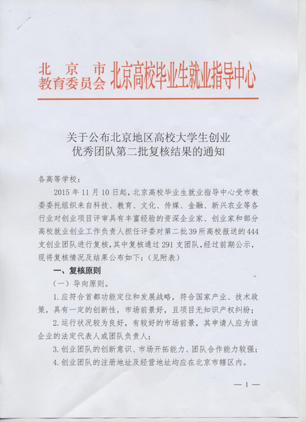 【新闻中心讯】为学习贯彻《国务院办公厅关于深化高等学校创新创业教育改革的实施意见》(国办发【2015】36号)文件精神,引导鼓励高校学生积极开展自主创业,北京市教育委员会近日组织开展了“北京地区高校大学生创业优秀团队”遴选活动。经高校选拔推荐、组织专家组评审、评审委员会审定和社会公示,最终确定了包括我校申报的29支团队在内的北京地区39所高校报送的444支团队进行复核,其中复核通过291支团队。创业项目包括科技创新、现代服务、文化创业等多个类型。由我校大学生就业指导服务中心报送的龙谦阁红木会馆、北京明祥国际文化有限公司、帕丝贝壳(北京)服装服饰有限公司、北京青木唯创国际文化传播有限公司、北京丝道通达商贸有限公司等19支优秀创业团队荣获“2015年北京地区高校大学生创业优秀团队”称号。
