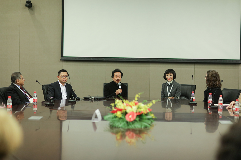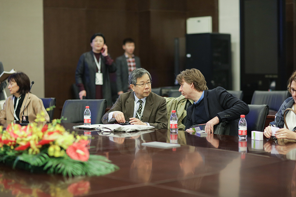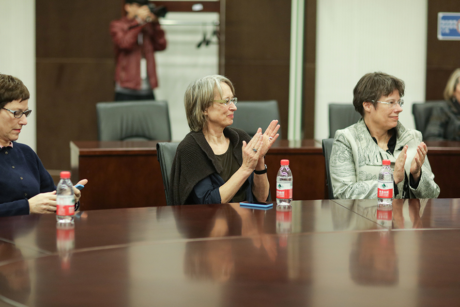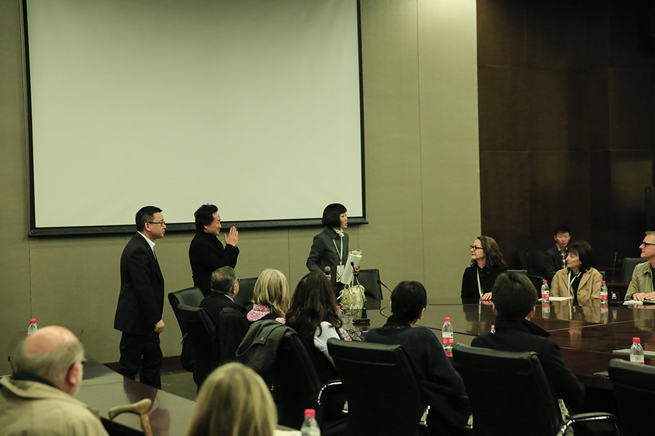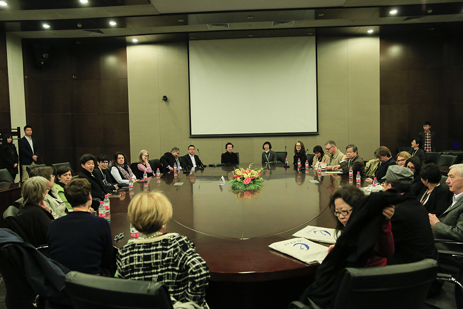 北京服装学院副院长詹炳宏(右二)会见IFFTI主席 Frances Corner OBE教授(左一)