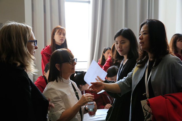 欢迎见面会后,执委会委员与特邀嘉宾进入北京服装学院五个分委员会会场进行 IFFTI下属委员会会议(Sub Committees Meetings)。按照IFFTI组织构架,五个下属委员会包括1、Research科研;2、Industry产业;3、Education教育;4、Finance财政 ;5.Membership会员。五个委员会成员分会场进行会议研讨,每个分会场由执委会委员主持,各执委会委员邀请来自相关行业嘉宾、院校代表、科研代表、出版界代表们,大家一起围绕分委员会主题进行讨论,每个分委员会会议时长为120分钟。其中“Research 科研”与“Education 教育”两个分会场是参与嘉宾最多的委员会。下午13时至17时,IFFTI执委会委员们聚集一堂,参加第35届IFFTI执行委员会会议(The 35th IFFTI Executive Committee Meeting ),各执委会委员将上午分会场的研讨情况向全体执委进行陈述,并同全体执委会委员进行逐题的深入讨论。