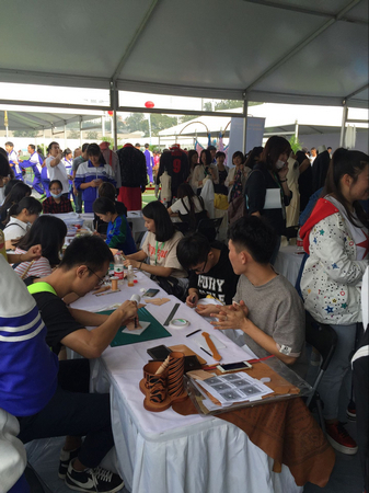 本次成果展首次将大创项目、学科竞赛、校企合作、“实培计划”的成果和经验集中进行展示和交流,是对我校创新创业教育成果建设的一次全面总结。在“霓裳服装展示区”,我校设计了众多精彩纷呈的展示和互动环节,展示内容有毕业生优秀服装作品静态展、电脑虚拟服装设计演示以及“电子体感”服装试穿等。在展示精美服装成品的同时,我校服装设计专业和艺术设计专业的学生也来到展会现场,通过服装立体裁剪、T恤水彩涂鸦和皮具体验等节目,与参展观众进行互动,互动场面热烈、妙趣横生。我校承办的互动展区充分展示了师生的创新思维,受到了观展嘉宾和观众的高度关注和充分肯定。