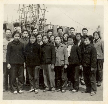 1964年合成教研室全体成员在建设中的小白楼前合影