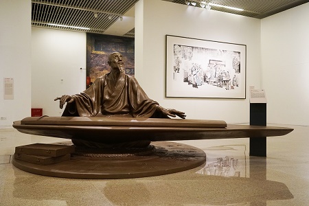 邓柯老师:创作历时五年,创作过程其实也是逐步走近这个人物的过程,很艰辛、漫长。尤其是构思阶段,怎么切入,如何构图,手法、语言、形象、空间等方面都需要商榷。于是我开始看书、研究、考察:去了河南沁阳的朱载堉纪念馆进行实地考察,与中科院朱载堉研究专家戴念祖先生交流创作细节,与北京服装学院陈芳教授交流创作中服装的细节。在此期间,走访了许多专家学者,并且找了很多关于朱载堉的传记和研究成果,对朱载堉这一人物的人生经历、性格品质做了详细的调研。进而通过这些调查研究来完善这一人物形象,从人物神态、动作以及服饰穿着等方面来塑造最真实的人物。