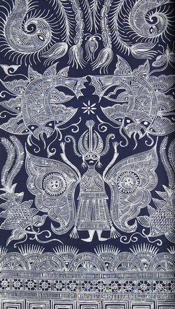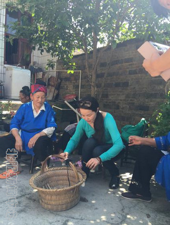 孙雪飞老师待人亲和,对记者娓娓道来,2017春夏主题是“苗述”,灵感来自贵州地区苗族传统文化元素。2016年7月,孙老师到贵州采风,苗族古老的文化、神秘的图腾和传承千年的手工技艺都带给孙老师心灵上的震撼,让她产生了强烈的创作冲动。为了把握住稍纵即逝的灵感,采风的时候,孙老师会随身携带一个小本,将所见所想所感记录下来,真正落笔设计时再把记录的素材梳理一遍,将采风过程中感性的火花变成理性的设计,让设计更合理可行。比如在采风过程中见到的苗族蜡染,很多图形都有特定的含义,是苗族世代传承下来的,非常质朴、有张力。但是蜡染的图形并不完全适合现代服饰应用,所以孙老师就想把有特定意义的符号提取出来,解构重组,赋予传统纹样以新的秩序,重组成新的充满活力的图形,表达对自然、对苗族文化的崇敬。在尊重苗族传统文化的基础上,让苗族纹样更年轻、更有活力,使古老神秘的苗族文化在当代焕发新的力量。