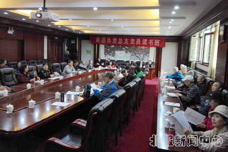 在读书班开班仪式上,徐剑同志首先介绍了举办本次离退休党员读书班的重要意义、日程安排等。接下来,与会老党员们一同观看了由中国社会科学院原副院长李慎明同志所做的《十八届六中全会为全面从严治党开创新局面--学习贯彻党的十八届六中全会精神》的录像报告。李慎明同志从十八届六中全会的重大意义,十八届六中全会若干新思想新观点新要求,学习贯彻十八届六中全会需要把握的几个问题,坚持不忘初心、继续前进,为全面从严治党做贡献等四个方面作了精彩的报告。深入阐述了从严治党是加强党的建设的重要举措,党员的党性锤炼是长期的、永无止境的、永不停歇的,对于党员的思想教育永远在路上。