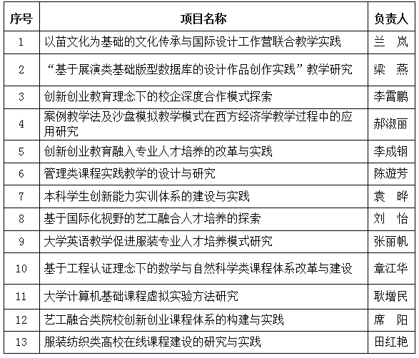 - 我校13个项目获批“纺织之光”中国纺织工业联合会高等教育教学改革立项项目