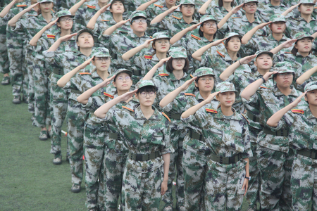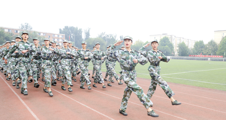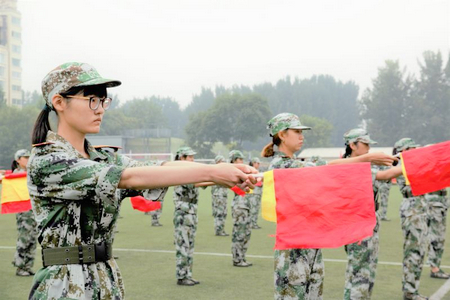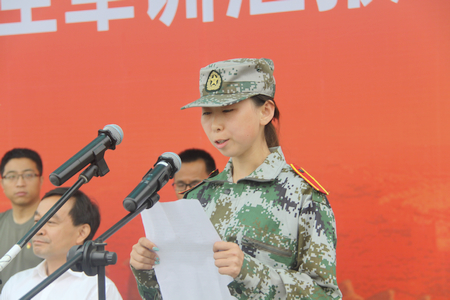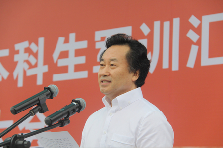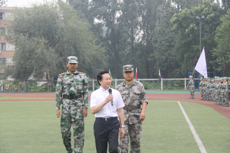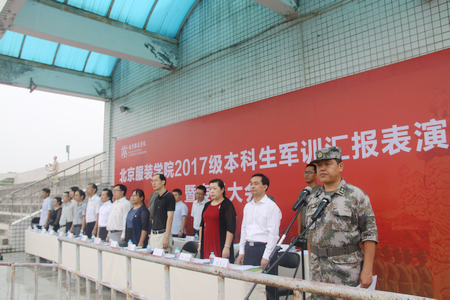 伴着激昂的军歌,刘元风院长在承训部队李保华团长的陪同下,对全体军训学生进行检阅。刘院长亲切地问候全体作训新生,同学们也用洪亮的口号声将十余天来训练出的精神面貌向刘院长展示。