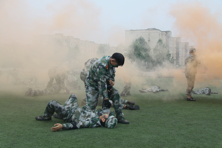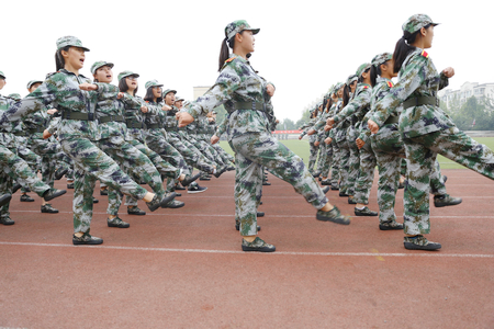 随后,由1400余名新生组成的16个方阵,以整齐的着装、昂扬的风貌依次通过主席台。同学们个个精神抖擞,神采飞扬,规范的动作、飒爽的英姿、恢宏的气势,博得了台上台下阵阵热烈掌声。在步伐整齐的分列式后,由58名英姿飒爽的女兵组成的海军旗语方阵以及40名勇敢顽强的战士组成的特战方队,分别为在场师生展示了他们的训练成果;1300余名英气勃发的北服学子组成的军体拳表演方阵,体现了人民解放军英勇顽强的战斗作风,刚劲有力的动作赢得了现场师生经久不息的掌声。