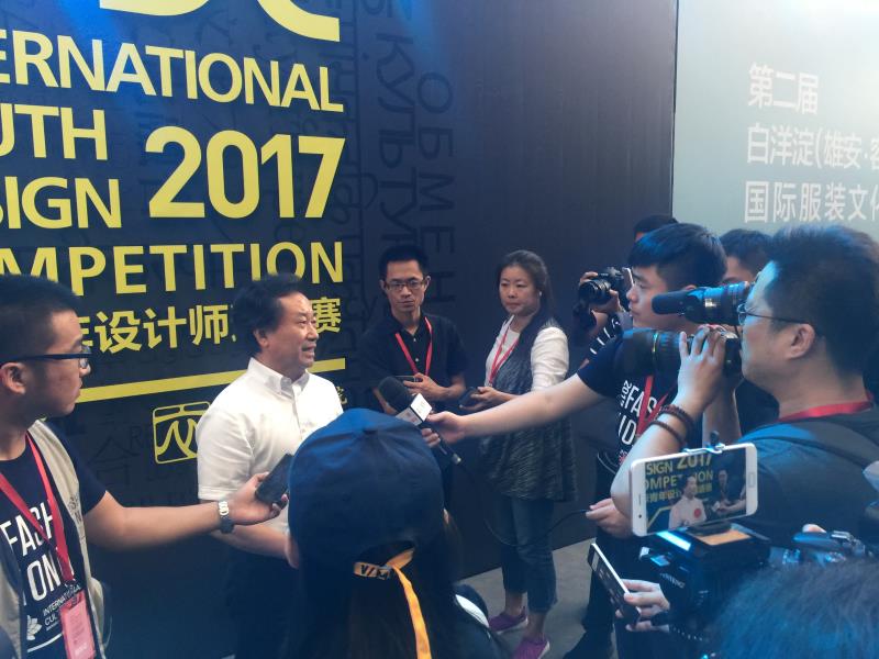 时尚雄安盛典颁奖礼前,北京电视台记者对王占永县长进行了采访。他说,希望发挥北服的优势,通过举办服装文化节开启容城时尚文化城市建设的新纪元,使得时尚基因更深入地植入雄安新区,从而促进纺织服装产业的转型升级,使更多的人关注雄安时尚产业的发展。