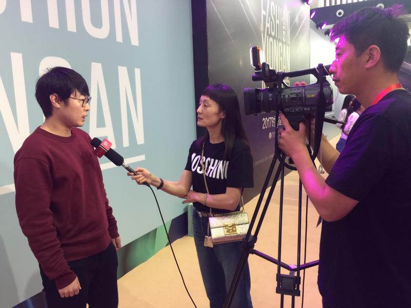 中央电视台记者现场对获奖设计师和中外观众进行采访