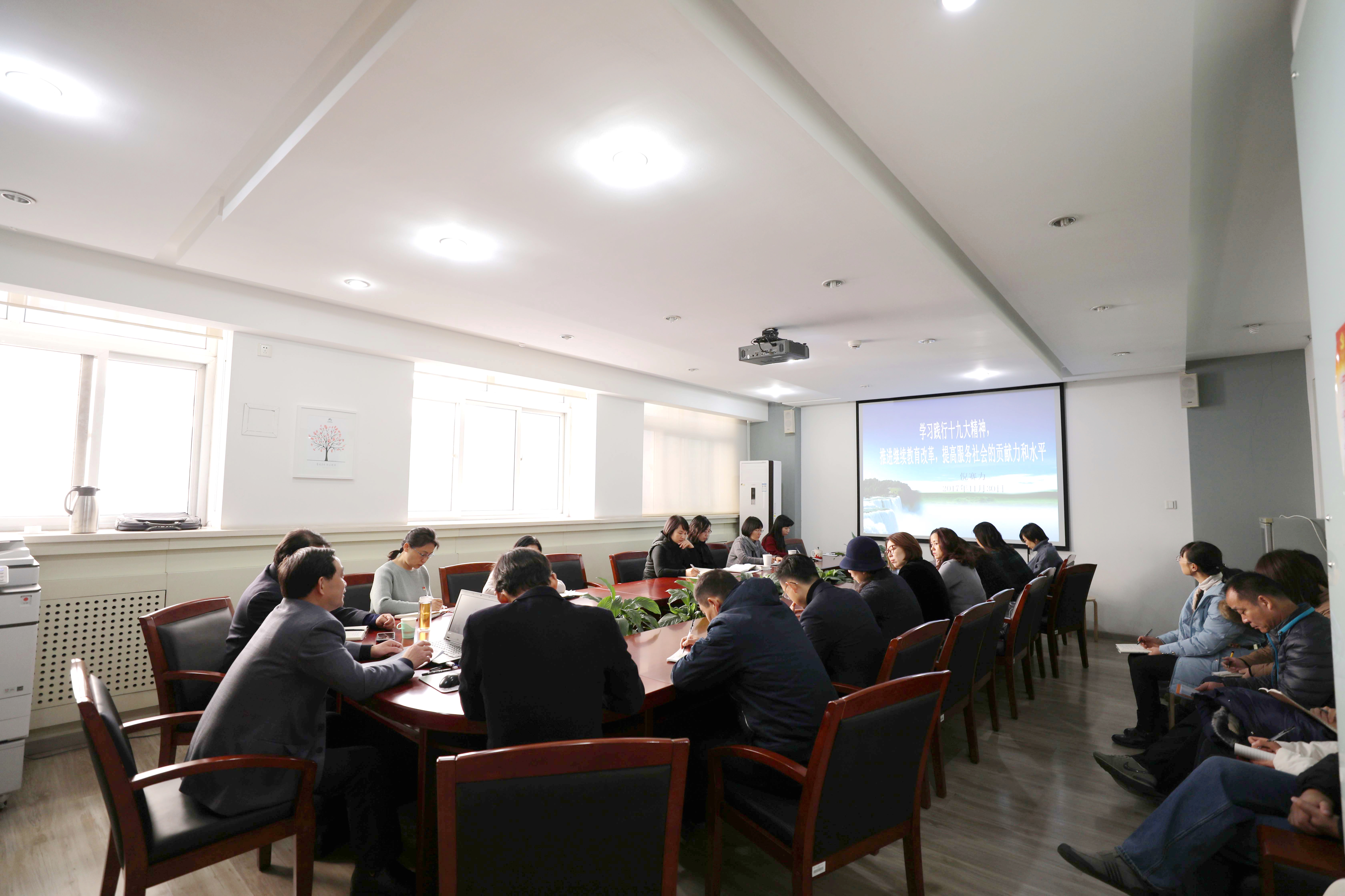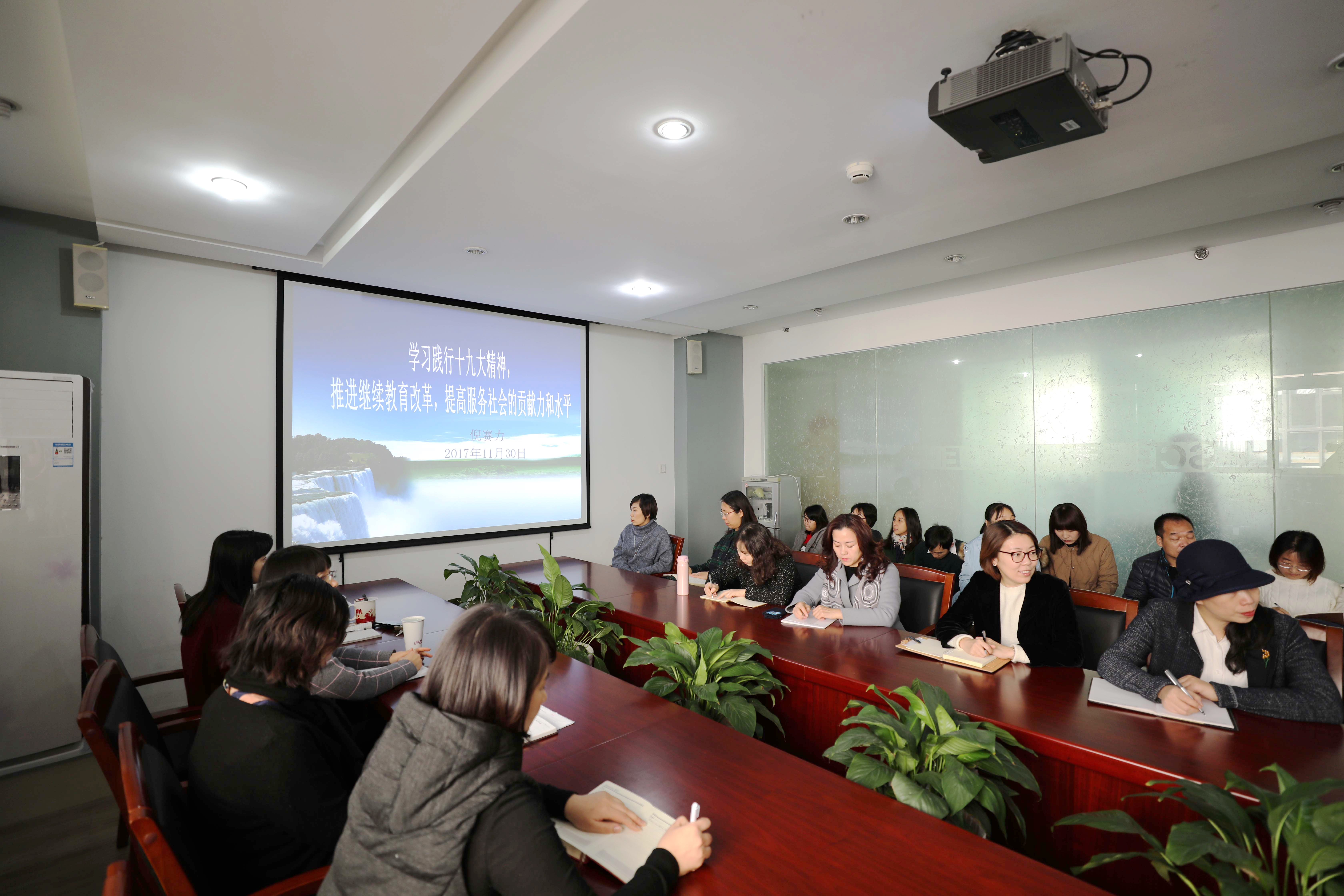 11月30日上午,党委副书记倪赛力应邀来到继续教育学院,为全体教职工上了一堂题为《学习践行十九大精神,推进继续教育改革,提高服务社会贡献力和水平》的专题党课。