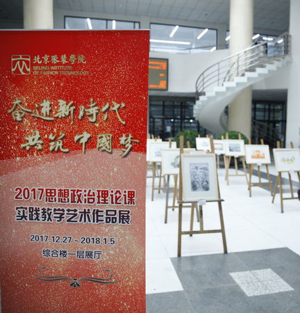 12月27日,以“奋进新时代 共筑中国梦”为主题的2017北京服装学院思想政治理论课实践教学艺术作品展开幕式在综合楼大厅举行。参加开幕式的有我校党委书记马胜杰、中国戏曲学院思想政治理论课教学部主任梁建明、北京第二外国语学院马克思主义学院院长胡伟,校主要职能部门负责人和相关二级学院负责人,思想政治理论课教学部全体专兼职教师和部分学生代表。开幕式由思想政治理论课教学部副主任闫东主持,思想政治理论课教学部主任张红玲对本届展览的主题和构架进行了讲解说明。最后,党委书记马胜杰宣布展览开幕。开幕式之后,与会者参观了位于综合楼一层展厅和图书馆大厅的2017思想政治理论课实践教学艺术作品展。