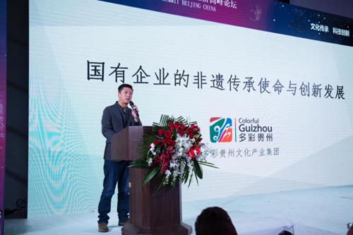 接着,多彩贵州品牌资产管理公司总经理刘洋作题为《国有企业的非遗传承使命与创新发展》的讲话。他对于我国丰富的民族文化资源在如何传承与创新上有着独到的见解,剧集资源,搭建平台,引领示范,转化落地,这样才是对非遗最大的尊重、最科学的保护传承,也是对“非遗扶贫”最理性的诠释和效益凸显。