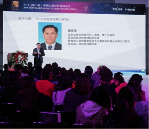 北京工商大学副校长谢志华教授热情洋溢的演讲,把听众拉回到学术碰撞中,他的《中国的投资政策与环境》从我国的投资政策与环境的角度下,对现如今的定制经济进行了独到的深刻解读。