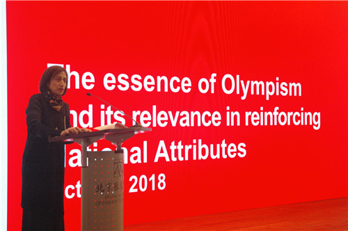 论坛伊始,西奥多拉·玛莎里斯女士(Theodora Mantzaris)做了题为《奥林匹克的精髓及其与强化国家特质的关联》的分享。西奥多拉·玛莎里斯女士是英国当代著名设计师、插画家、创意思维和品牌战略家,英国艺术指导协会的成员,同时也是享誉全球的运动专家,曾担任东京2020年和北京2022年奥运会的国际奥委会顾问、雅典2004奥运整体形象景观设计创意总监和北京2008奥运会形象景观设计顾问。西奥多拉女士结合自身设计经验,与到场嘉宾和观众分享了她对于奥运会、奥林匹克主义的本质、以及奥林匹克的视觉表达和与主办国的形象之间的关系的一些看法,让听众们受益匪浅。