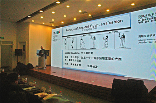 剑桥大学授予的全球顶尖2000名学者之一、古语言教授Sheldon Gosline做了精彩的有关古埃及服饰研究的报告。他指出埃及人很早就会通过服饰和配饰来表现社会地位和宗教信仰。 史前时期,即 6000 年之前,服饰表达便紧随流行趋势,如将外来的青金石作为珠宝和配饰。随后青金石在社会统治和时尚变迁下成为精英使用的宝石。一些古埃及服饰风格也局限于特定的性别和年龄。很多埃及服饰文化精髓都在此发言中得到了详解。