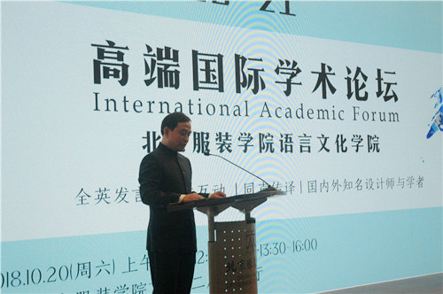 10月20日,由北京服装学院举办,语言文化学院承办的高端国际学术论坛在七号楼艺术报告厅拉开帷幕。北京服装学院党委副书记倪赛力出席。民族服饰博物馆馆长贺阳,语言文化学院院长张慧琴、党总支书记赵二东、副院长罗冰、党总支副书记姚冬梅参加本次论坛。本次论坛邀请了8位来自服装设计、服饰文化、文化教育等行业的专家学者作为主讲嘉宾,全程提供专业的同声传译服务。论坛由语言文化学院院长张慧琴主持,院长助理、商务英语专业教研室主任杨武遒协助主持。