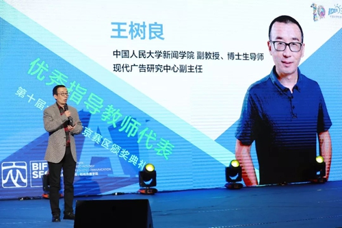 优秀指导教师代表中国人民大学王树良老师从切身经验出发,提出学校和教师要重视大广赛,积极组织学生参与,组织创意学习,结合生活经历,才能有更好的创意。