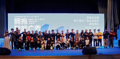 最后,在部分获奖师生及观众代表共同上台与行业大咖、嘉宾集体合影的幸福时刻,“拥抱智能广告新时代”高端论坛暨第十届大广赛北京赛区颁奖典礼圆满结束。