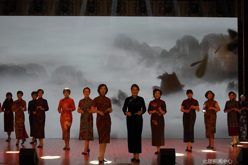 团拜会现场歌声悠扬,舞姿蹁跹,欢歌笑语,热闹非凡。语言文化学院分工会郑华伟、刘颖、张慧琴、赵二东等老师带来的中外儿歌串烧《童心无界》,唱出了老师们无暇的快乐心情;服装艺术与工程学院分工会刘卫老师带来歌曲《祝福》,商学院分工会韩燕老师带来歌曲《最浪漫的事》,赢得全场掌声;离退休老教师合唱团的混声合唱《不忘初心》,艺术设计学院分工会朱梦婷老师带来钢琴独奏《When you wish upon a star》,时尚传播学院分工曲悦老师的女声独唱法语歌曲《卡迪斯城的姑娘》,机关分工会马建军、王晓鸥、宛文科、葛丽玲老师的合唱《我爱你中国》,为团拜会带来一个又一个欢快的篇章。最后,由党委副书记艾丽带领的女教授协会的老师们带来旗袍秀表演,为团拜会画上了圆满的句号。