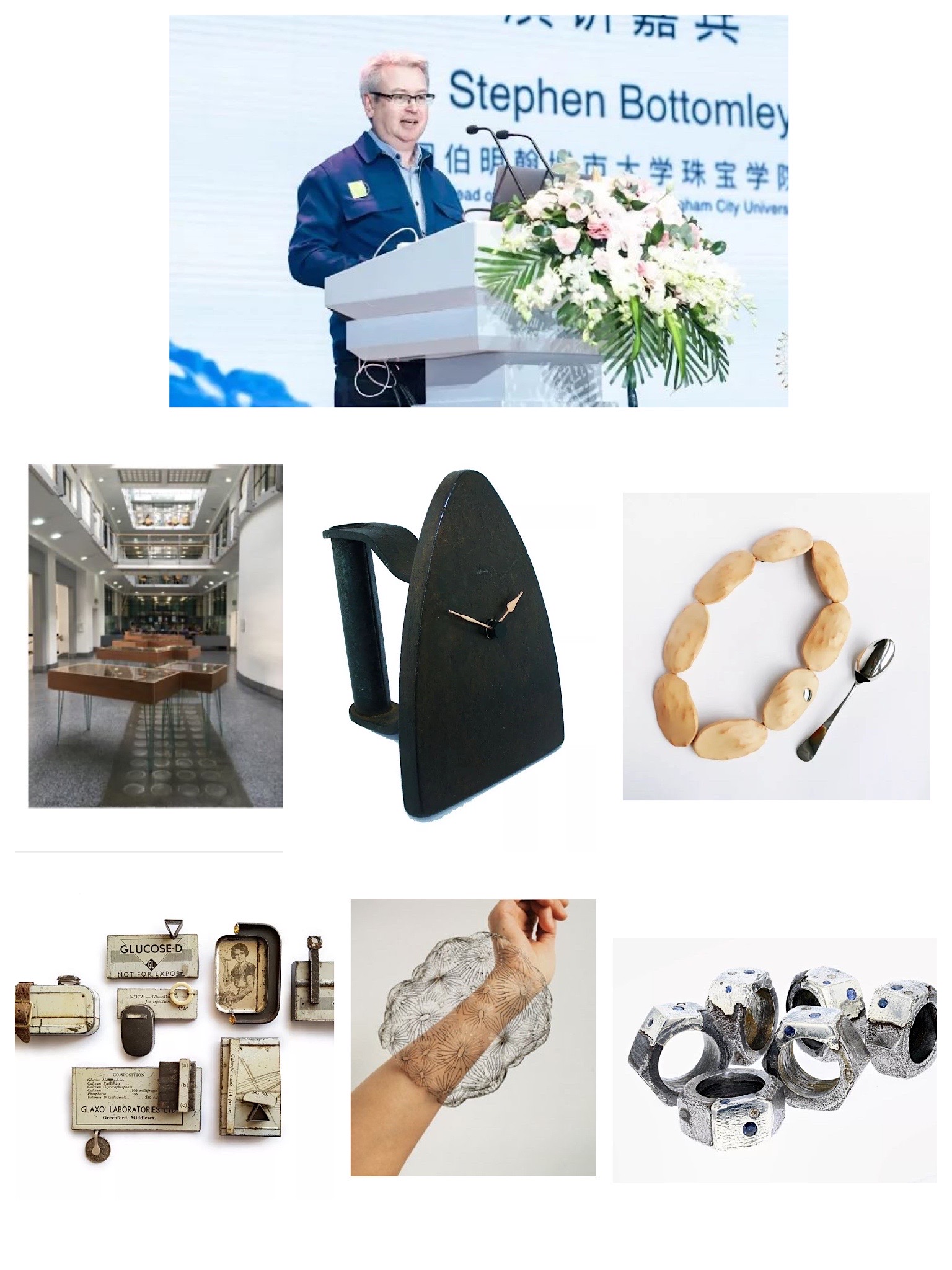 英国伯明翰城市大学珠宝学院院长Stephen Bottomley 发表了题为《铁城市》的演讲,介绍了在慕尼黑帝国水晶博物馆举办的一场以“铁”为主题的珠宝和物品展览FERROcity。铁被认为是矿物、化学元素、建筑材料,也是人体的一部分。展览是对铁在我们生活中重要性的一个很好的提醒和深入的探索。像FERROcity这样的主题节目,对于艺术家在主题中发现的各种想法以及从中产生的奇妙物体都很有价值。