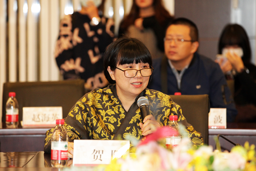 北京服装学院民族服饰博物馆馆长、2008年北京奥运会赛事制服及火炬接力制服总设计师、博士生导师贺阳发表了题为《极简心象——“一方布”服装结构的传承》的演讲。她提出中国传统服饰以不同的矩形拼合的制衣方式,简单易学,技艺门槛低,一个初学的女孩,都能够迅速的掌握。简单的技术,又有极大的发挥空间与弹性,在技艺熟练、精进的过程中,可以达到更高的境界,这是先人留下的可传授的方法,具有普适性,同时更蕴含深刻的仁厚与慈悲。用尽可能少的元素表达更加丰富的效果,揭示了大自然节省、不徒劳、多样性的基本原则与天道;用最简化的方式,解决最根本的问题,满足多样化的需求,民间的智慧是传统技艺传承的要义。以恭敬、谦卑的态度向先人和民间的妇女学习,以手艺的为基本线索,研究传统造物的思想与逻辑,让后来人在日渐西化的语境中永不迷失自己的文化来源与方向。