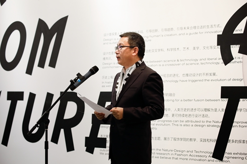 詹炳宏在开幕式上致辞。他说,本次展览在科研和教学方面有双重意义,设计学科是新兴交叉学科,服饰艺术与工程学院的研究聚焦跨学科整合,一方面通过科研探索高水平教学团队的培养模式,同时培养了青年骨干教师们和学生的科研转化能力,关注产业发展所需的技术如何通过设计的手段和方法转化为产品;另一方面,在项目中关注科研成果如何反哺教学,构建艺工融合的设计教学体系,培养具备国际视野、具有完善的设计理论体系和技能、能够运用设计思维发现问题、分析问题、解决问题的创新型设计人才。