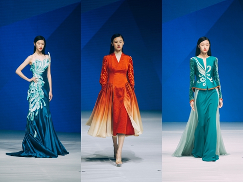 随后,中国十佳服装设计师优秀作品(北服)展演精彩亮相。参加演出的作品全部出自于获得中国服装设计师十佳称号的服装艺术与工程学院教师: 楚艳、杨洁、朱雯、郭瑞萍、王媛媛、顾远渊、梁燕、刘卫、熊昀、于茜子。作品既有基于敦煌服饰文化研究而传承与创新的作品,也有代表中国针织服装设计流行趋势与最高设计水准的作品,更有基于少数民族文化和潮流特色而研发的男装以及女装类作品。这些作品风格极具自身特色,美轮美奂,融合了当下时尚文化以及先进科技,充分展现出了北京服装学院在设计学科的雄厚力量、领先成果以及一流的师资水平。