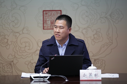 赵燕林副研究员做了题为《敦煌唐代维摩诘经变中珥貂大臣》的专题讲座。赵燕林副研究员认为在莫高窟初唐第220窟和第332、335窟维摩诘经变的文殊菩萨一侧,随同中原帝王问疾的队伍中,有一身或二身平巾帻上珥貂的侍臣,其紧随帝王之后或为前导,位置显赫。对比相关文献资料来看,第220窟平巾帻右侧珥貂大臣应为贞观元年复置的“散骑常侍”;第332、335窟二身平巾帻左侧珥貂大臣应为贞观十六年后设置的“左散骑常侍”,即武周时期的“鸾台左相”二人。这一人物身份的识别对于我们准确认识唐代职官服制形式,以及敦煌壁画所蕴含的历史价值的阐释均具有重要意义。