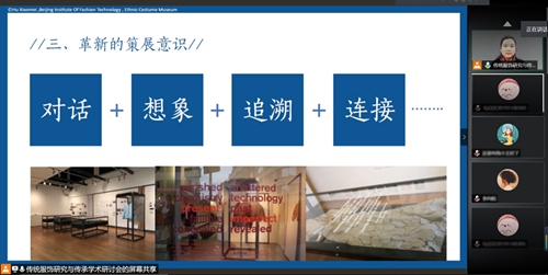 10月21日,“融合·守创——传统服饰研究与传承学术研讨会”以线上直播的形式在北京服装学院民族服饰博物馆举行。研讨会由北京服装学院、北京博物馆学会共同主办,北京服装学院民族服饰博物馆、奥运服饰文化研究中心、北京博物馆学会非物质文化遗产(工艺美术)专业委员会承办。