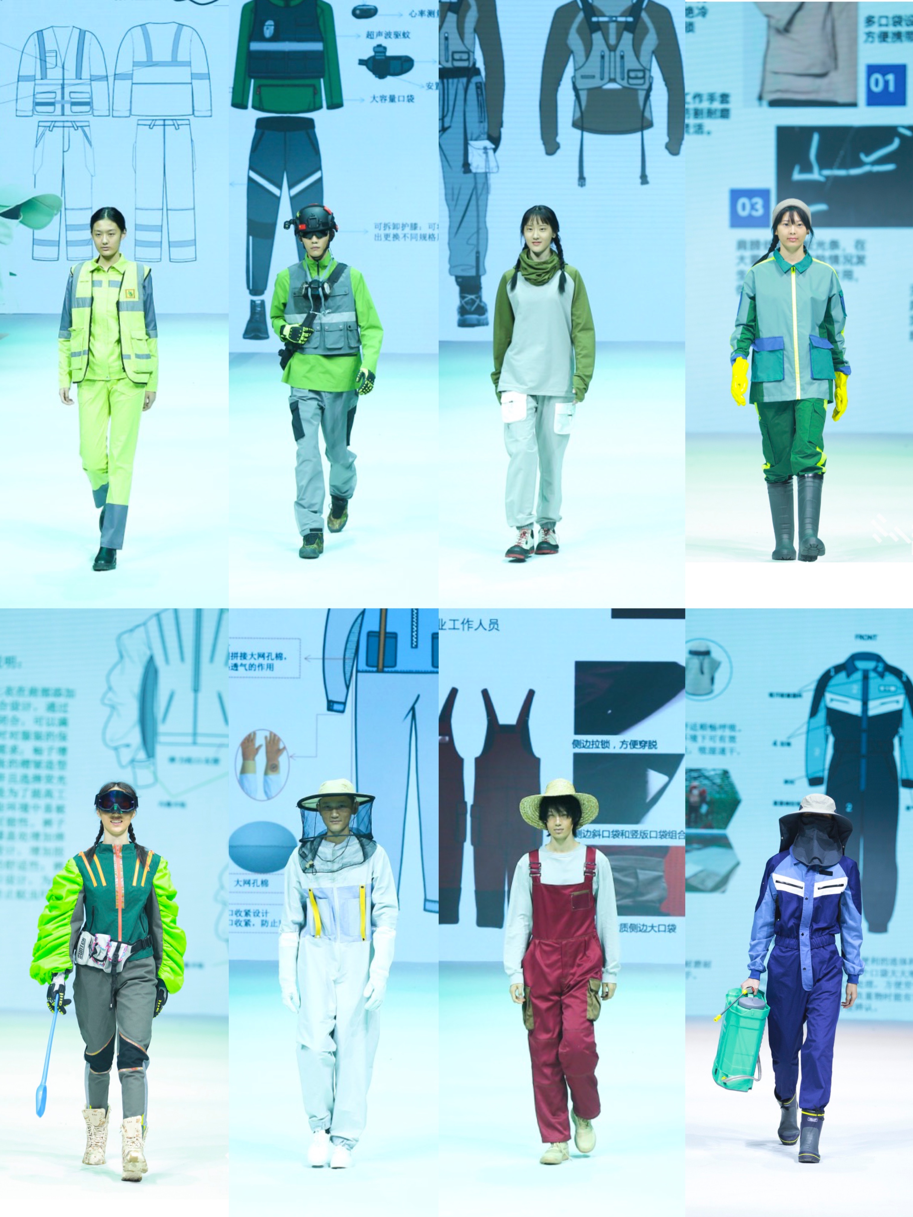 时尚工作强调为真实的世界设计、为人民而设计。承担主体服装设计的北京服装学院服装艺术与工程学院以党支部为单位,成立5个设计小组,师生全员参与。至2021年10月,各设计小组召开专项工作与学术研讨会30余次,在上半年全国疫情防控依然紧张的情况下,设计小组克服各种困难,近百名师生到边疆、走南北,足迹遍及26个省、自治区和直辖市,深入全国农林牧副渔重点特色区域实地调研,完成各类设计款式达到1529余套(农、林、牧、渔、副占比大约分别45%、15%、11%、16%、13%),其中已生产制作348款(套)。本次发布会集中两场展演,共展示其中优秀设计作品166套,其中农业、林业、牧业、副业、渔业分别45、34、22、43、22套。