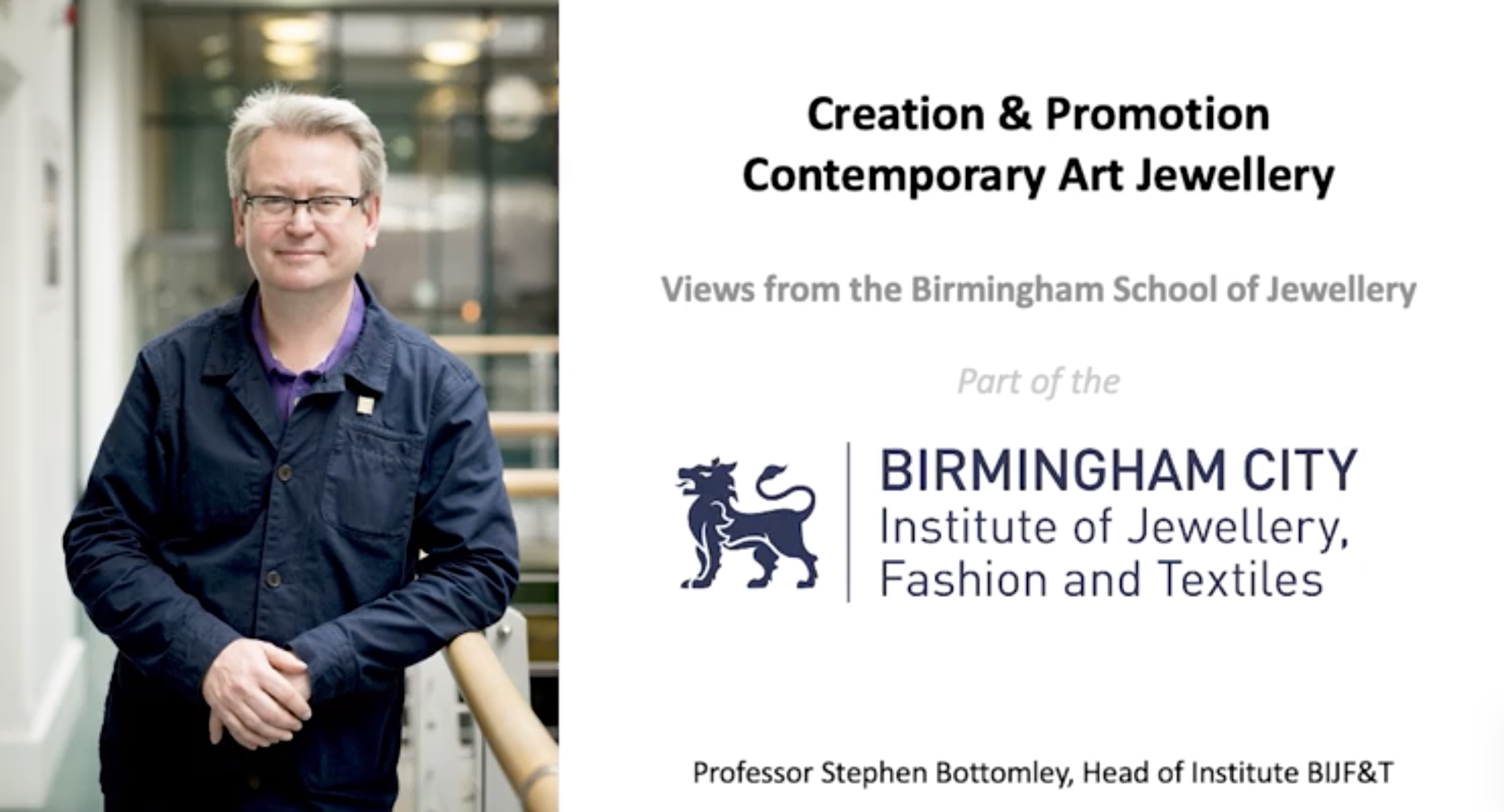 英国伯明翰城市大学首饰学院(Stephen Bottomley)发表了《当代首饰艺术创作与推广》的演讲,他说伯明翰首饰学院成立于1890年,位于英国第二大城市伯明翰的珠宝区中心。Stephen Bottomley简单介绍了这所学校的课程、地理布局并展示了这所学校的创作日常以及创作出的一些杰出的作品。