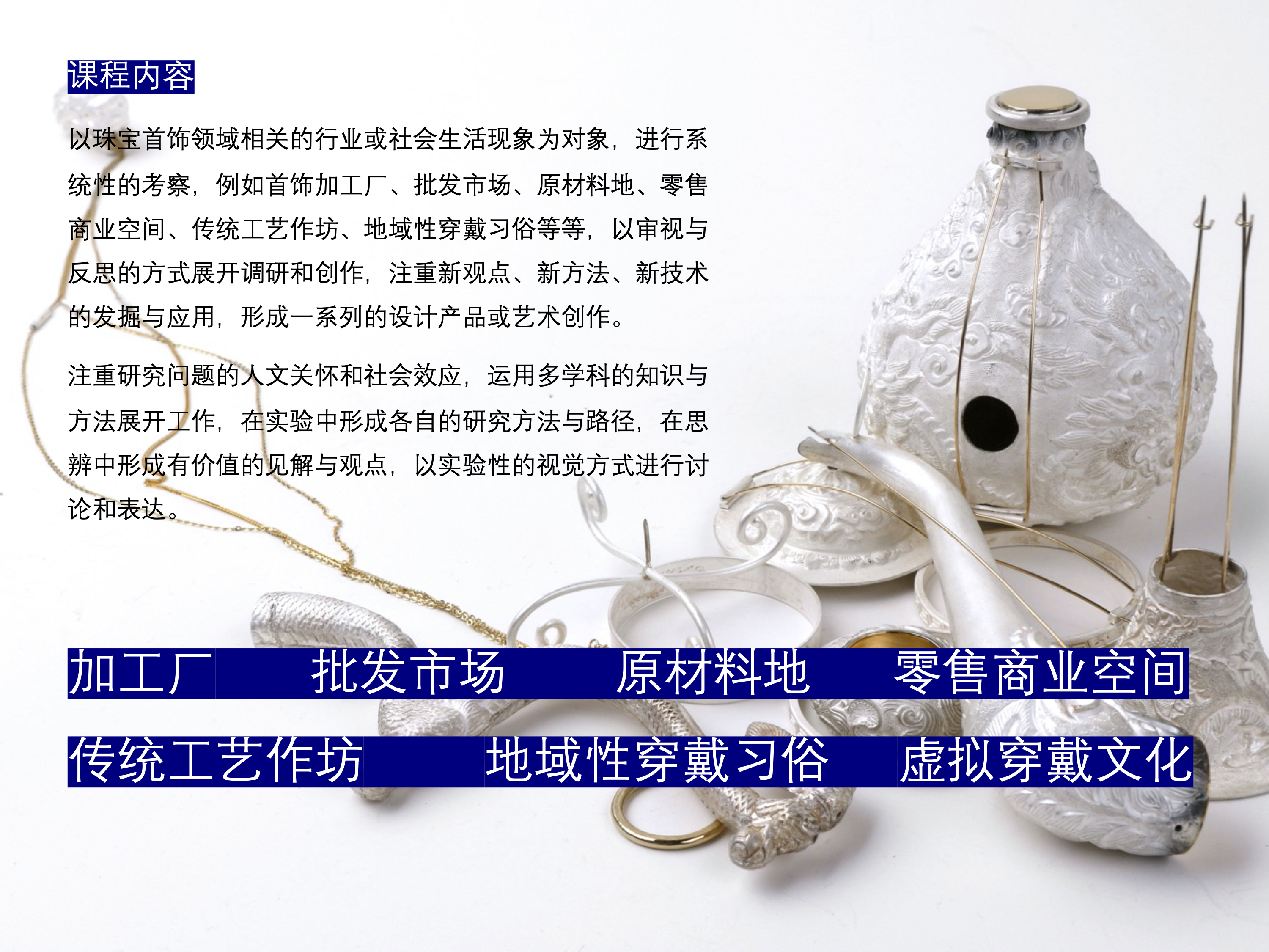 南京艺术学院设计学院工艺美术系主任、副教授王克震从首饰的起源反思当代首饰的新内涵,深度挖掘首饰的原始文化,创造性的关联今天首饰的多元样态,从自然、风格精神、象征与隐喻、叙事以及穿戴关系等角度,启发学生开展观念创新。