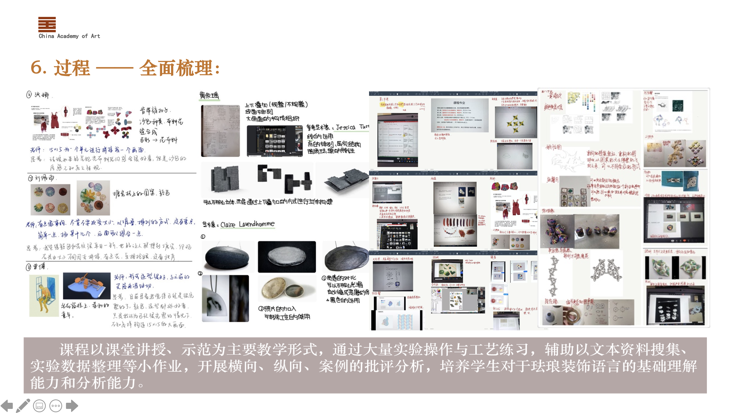 中国美术学院手工艺术学院首饰方向负责人段燕俪为我们展示了中国美术学院手工艺术学院的装饰基础课程,以珐琅工艺为例展示了科学的工艺研究思路,以及带领学生完成的课程实践,从材料工艺的角度,积极拓宽手工艺术的表达方法。
