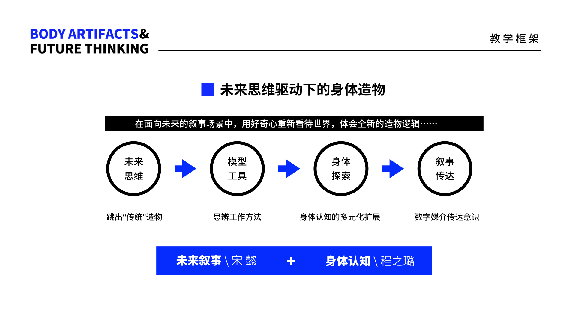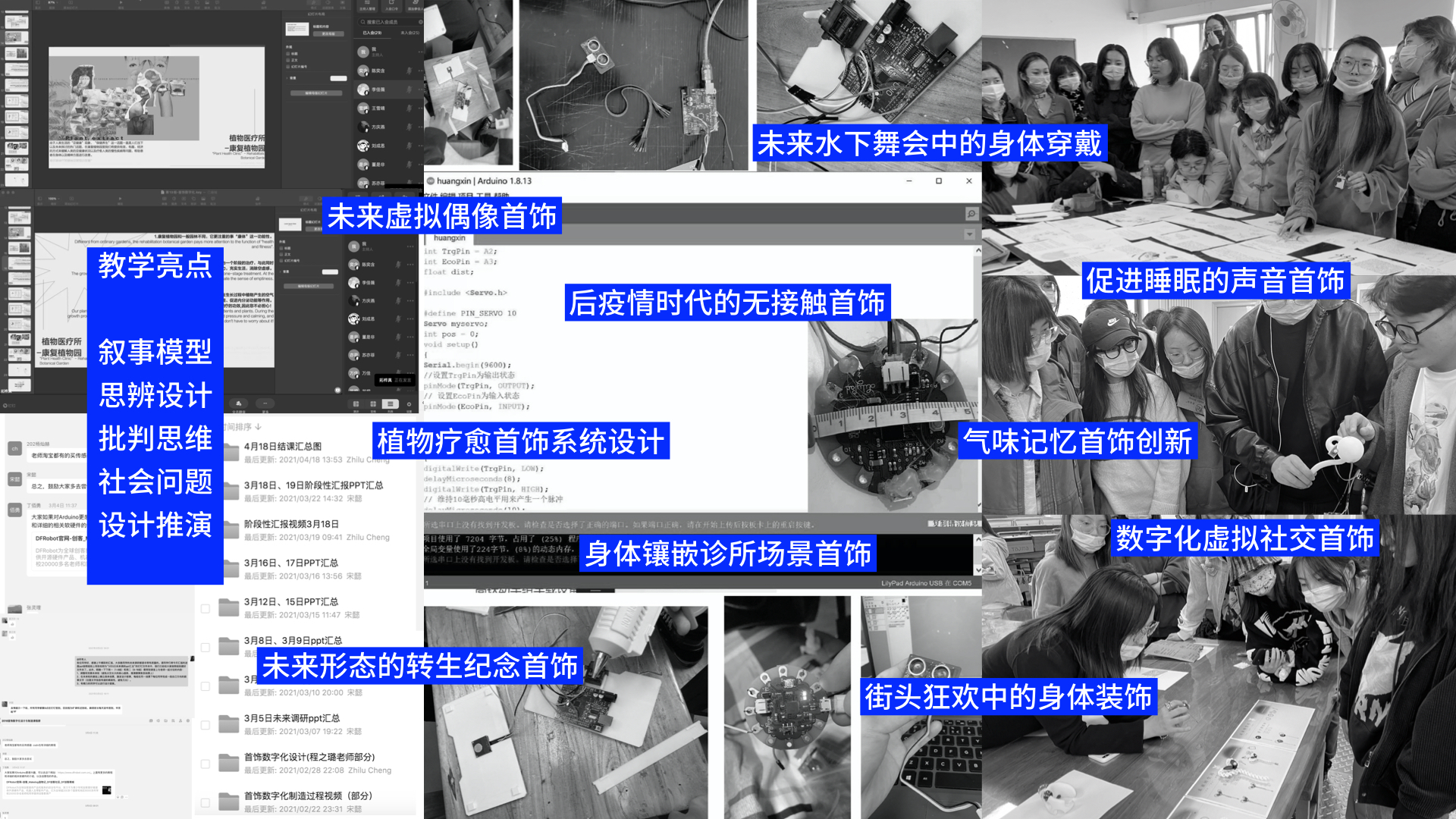 北京服装学院服饰艺术与工程学院珠宝首饰教学部副教授宋懿、助理教授程之璐通过模型、工具和方法,带领学生从未来思维的角度,探索首饰与身体的新型关系。并且借助多样化的数字技术完成面向未来的概念叙事。
