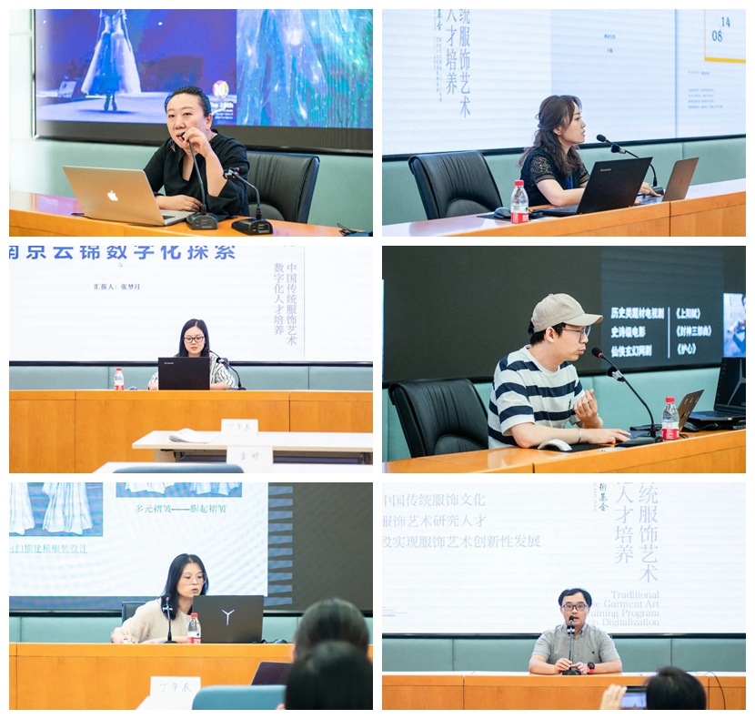 项目组多次组织学员进行学术沙龙和研讨活动,通过学术沙龙活动,学员和老师们围绕“中国传统服饰艺术数字化”主题,结合自身研究经历和专业方向,从传统服饰理论、传统服饰复原、传统服饰的数字化技术等方面进行了分享。每次学术研讨会最后,学员以自由发言的形式相互沟通交流,各抒己见,深入讨论中国传统服饰艺术数字化相关议题。