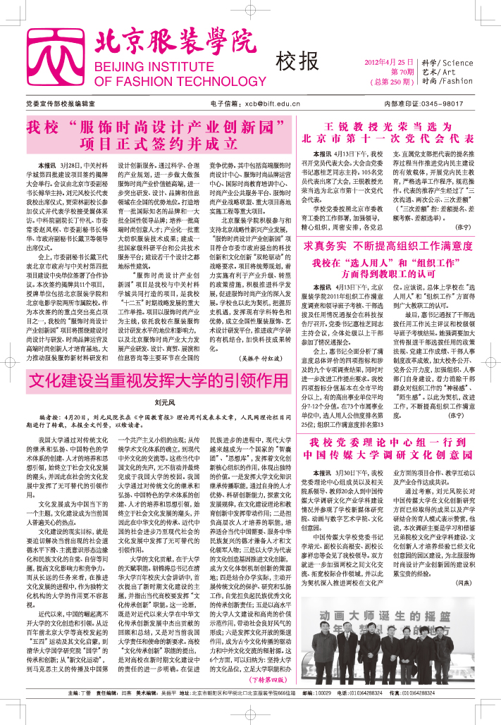 北京服装学院报总第250期