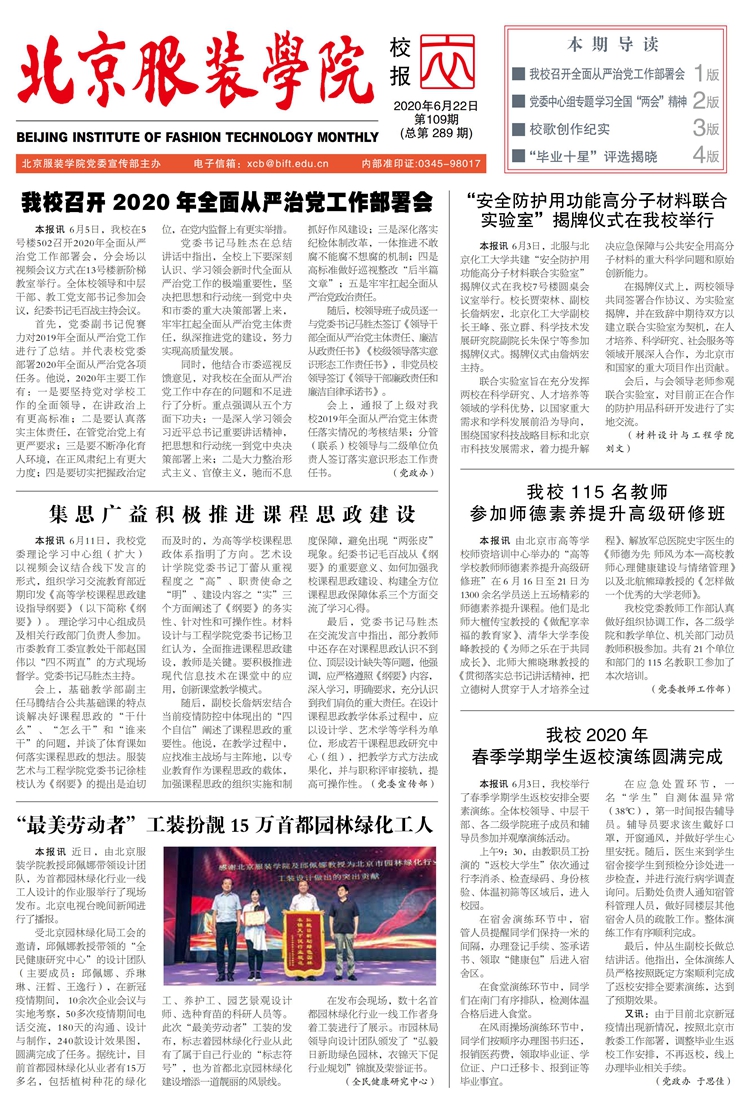 北京服装学院校报总第289期