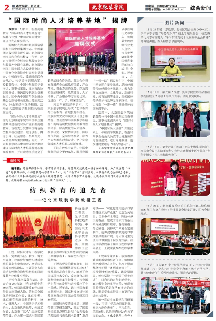 北京服装学院是一所有着深厚家国情怀和鲜明办学特色的时尚高校。学校前身是1959年2月创建的北京纺织工学院,1961年7月更名为北京化学纤维工学院,1987年2月改扩建为北京服装学院,是我国第一所公办服装高校。1998年,学校划归北京市管理。2019年由理工院校转为艺术院校,2020年明确为北京市高水平特色型大学。