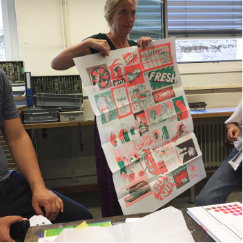 苏黎世站以“Basic Typography (analog / digital) (字体排版)”为主题,在世界上最大、收藏铅字最全的铅字工作室之一,开展专业的西文铅字排印和海报设计课程。课程由苏黎世艺术大学视觉传达设计系教授、字体设计大师鲁道夫·巴米特勒教授,以及乔纳斯·尼德曼老师策划并授课。参加该课程的学员来自北京服装学院艺术设计学院研究生、本科生,同时还有汉仪字库的专业字体设计师,共15名学员。