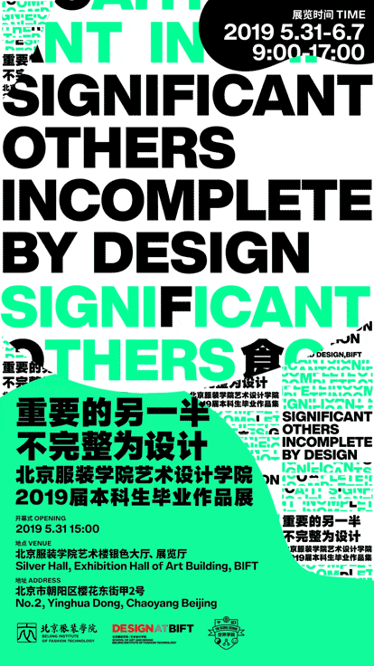 As the theme of the 2019 Grad Show of Art & Design school, Beijing Institute of Fashion Technology(BIFT), Significant Others poses a quest to students to explore their life environment, their personal, familial and social contexts with the aim to find an inspirational cause to understand and empower. Students are prompted to delve into their own reality, the city, the universe that surrounds them and devise a project that brings positive impact to a community of their choice by suppling a function, service, activity of any nature–this could be based on an economic transaction, a volunteering job, an educational/commercial/academic/cultural offering provided it clearly targets an unattended common need, whose extent can vary from a small group of people to a neighbourhood or an entire city district. With this in mind the project must reflect on this hypothetical perpetrator as a social partner, a significant other complement.