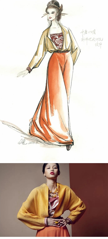 【编者按】唐代社会经济发达,文化艺术空前繁荣,是敦煌石窟艺术发展的鼎盛时期,也是佛教文化空前活跃并与当时生活、艺术结合最为紧密的时期。社会的开放和中外文化的交流,表现在服饰上尤为丰富多彩。本公众号将陆续推出敦煌服饰创新设计经典作品鉴赏,展示敦煌唐代典型装饰纹样如何融入当下服饰流行时尚形态,表达其传统服饰文化的当代性,寻找民族文化与现实生活相互关照的设计成果。