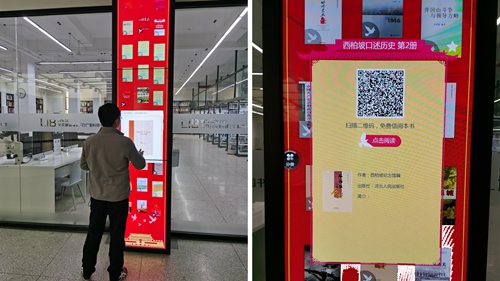 利用馆内超星瀑布流电子书借阅机(B210),以电子屏滚动呈现的形式,展示党史学习教育专题电子图书300余种。我校师生可现场选择图书,扫描二维码手机阅读,以互动的方式体验沉浸式党史学习氛围。