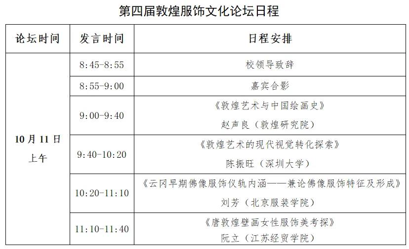 “第四届敦煌服饰文化论坛”将于2021年10月11日在北京服装学院艺术楼圆桌会议室举行。本次论坛旨在引导敦煌服饰文化的学术研究,弘扬敦煌石窟的文化艺术的魅力,传播和发扬优秀的中国传统服饰文化。欢迎校内外专家、学者、师生关注和参与!